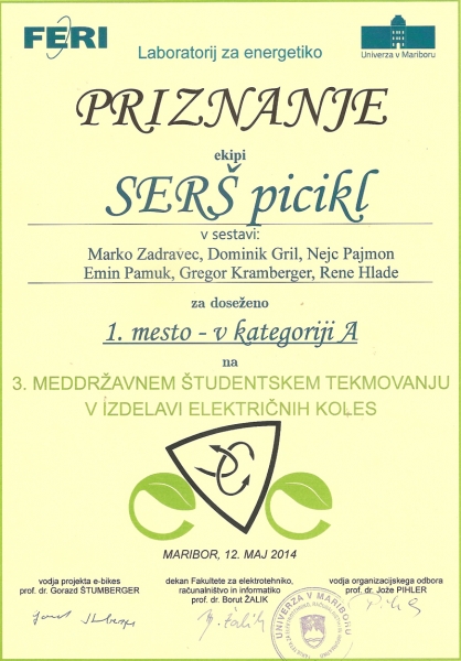 Ekipa SERŠ-a je pod vodstvom mentorjev Benjamina Verglesa, Darka Visočnika in Marjana Lindiča tekmovala v kategoriji A, v kateri tekmujejo cestna kolesa, katerih moč je omejena na 250W, hitrost na 25 km/h, imeti pa morajo tudi pedelec funkcijo.