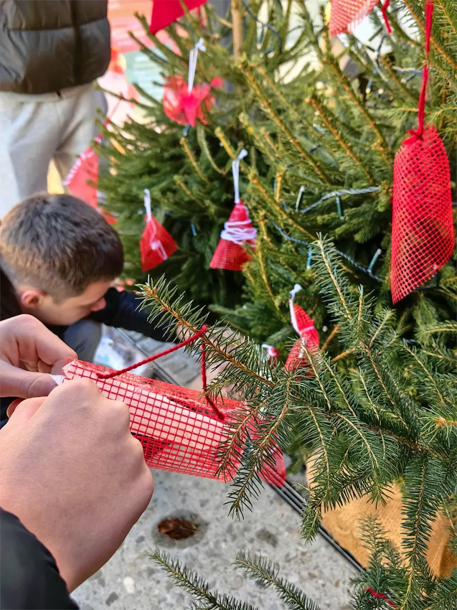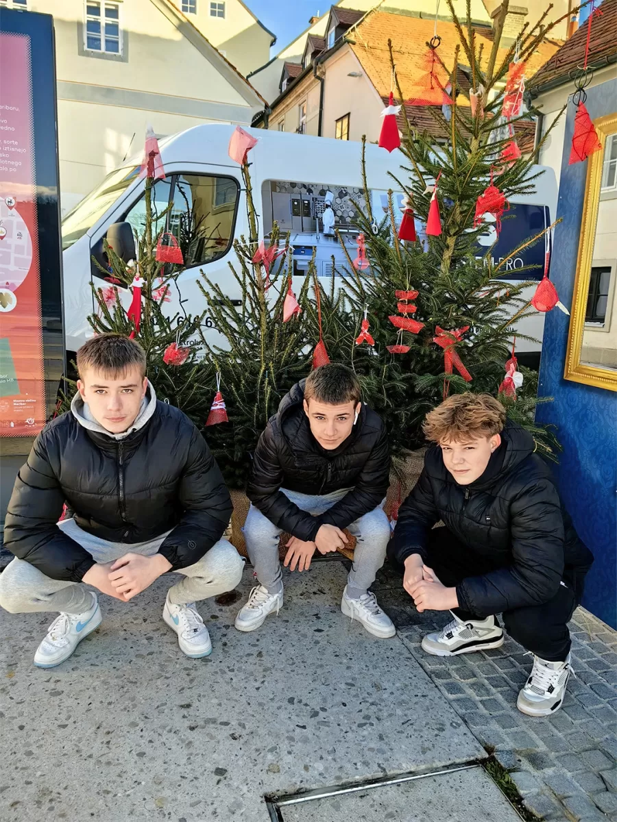 Letošnje praznične smrečice ob Stari trti v Mariboru krasijo čudoviti okraski, ki so jih ustvarili dijaki prvih letnikov pod mentorstvom Manje Jerič in Brigite Klanjšek.